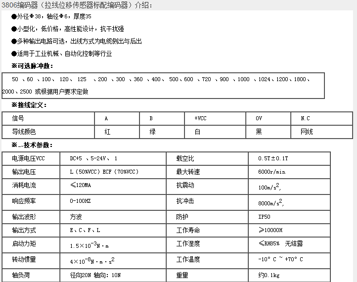 電梯位移編碼器以每旋轉(zhuǎn)360度提供多少的通或暗刻線稱為分辨率,也稱解析分度、或直接稱多少線,一般在每轉(zhuǎn)分度5~10000線。